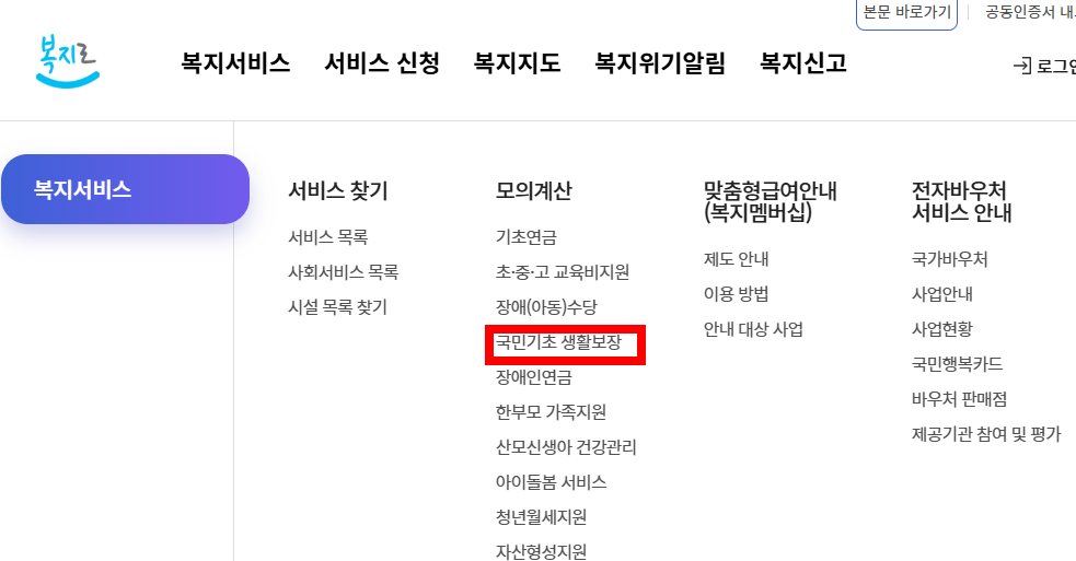 1️⃣ 복지로 홈페이지